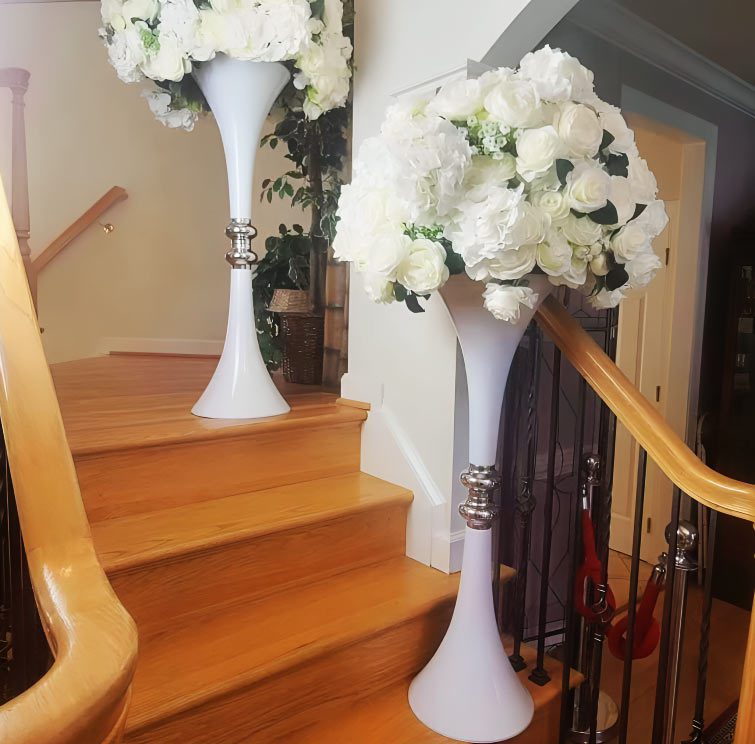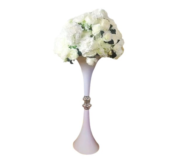 Make a bold statement with our elegant White Trumpet Shape Flower Vase, designed to elevate your wedding or event décor. Its tall, sleek silhouette is perfect for showcasing grand floral arrangements, creating eye-catching centerpieces for tables, aisles, or stage décor. The trumpet design adds height and sophistication, making it a favorite for luxury event setups.